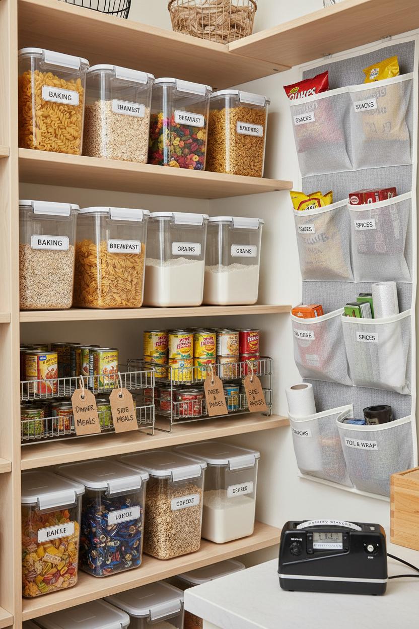 In the kitchen, pantry organization loves labels. Pop ingredients into clear storage bins so you can see what you have at a glance, then add simple tags like Baking, Breakfast, and Grains. Shelf risers earn double duty here: bring canned goods up front and label the rows by meal or cuisine so weeknights feel easy. If you’re short on shelves, an over the door organizer becomes a mini market—label each pocket for snacks, spices, tea, or foil. A classic label maker keeps everything cohesive, but don’t be afraid to mix in handwritten tags for warmth. The goal isn’t perfection; it’s a system that gently nudges everyone in the house to put things back where they belong.
