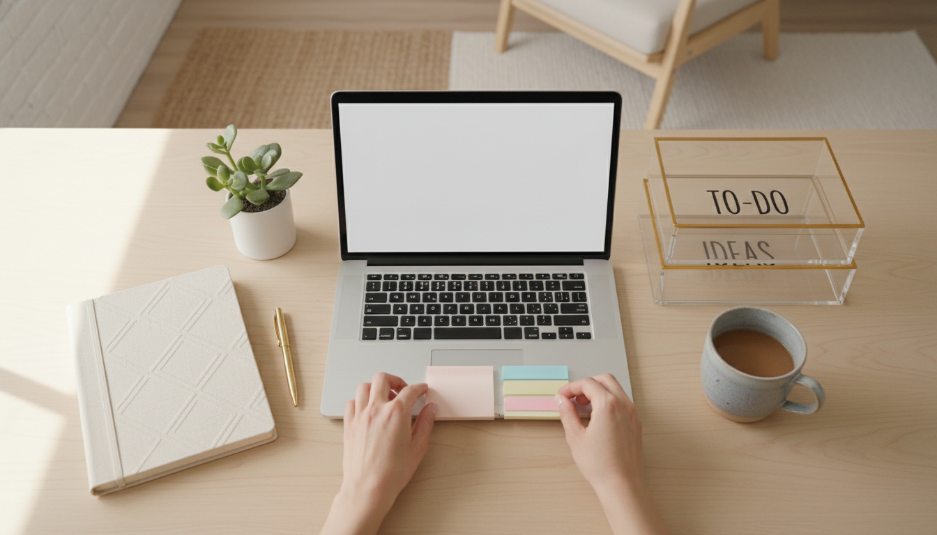 Think of this as your speedy reset ritual: set a one-minute timer and play a little game with yourself. Sweep everything off the prime real estate in front of your keyboard—papers, rogue sticky notes, half-finished coffee stirrers—into a neat staging pile to the side. From there, do the “three-touch” method: to-do on top of your notebook, to-file in a single stack, to-trash straight into the bin. Slide pens, highlighters, and lip balm into a simple desk organizer so your hands know exactly where to land next time. Any task you uncover gets parked in your weekly planner so it stops living in your head. This tiny burst isn’t about perfection—it’s about clearing visual noise so your brain can focus. If you love productivity tips that actually stick, start with light and fast: a timer, one pile, three decisions, done. You’ll be amazed how much desk organization you can knock out before the minute chimes.