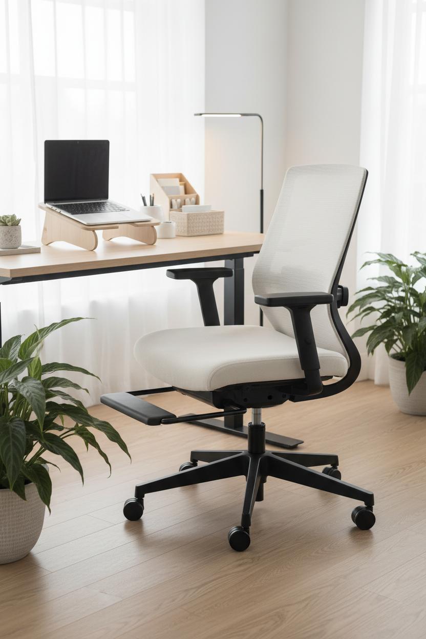 A few feel-good details make all the difference. Seek adjustable everything: seat height that keeps knees at 90 degrees, armrests that tuck under your desk without bumping, lumbar support that meets the curve of your lower back, and a tilt with tension so you can lean and breathe. A waterfall-edge seat preserves circulation, while breathable mesh or linen keeps you cool during long calls. If your floors are hardwood, choose soft casters; if you’re rolling over a rug, look for harder wheels. Pair your chair with your desk setup thoughtfully—if you use a standing desk, pick a chair that rises high enough for “perch” breaks between stand sessions, and consider a footrest to keep hips happy. To keep your neck aligned, add a laptop stand so your screen meets your eyes, and let a tidy desk organizer corral pens and sticky notes so creativity isn’t competing with clutter. For true calm, give your cables a home with simple cord management—no more tangled spaghetti behind your monitor. Little upgrades like these don’t just polish your space; they unlock momentum. When your seat supports you, ideas feel lighter, tasks feel shorter, and you’ll notice how much more you get done with less strain. File this under small-but-mighty workspace ideas: invest in comfort first, then let everything else—plants, mood lighting, and pretty trays—layer in around a chair that makes you want to sit, think, and create.