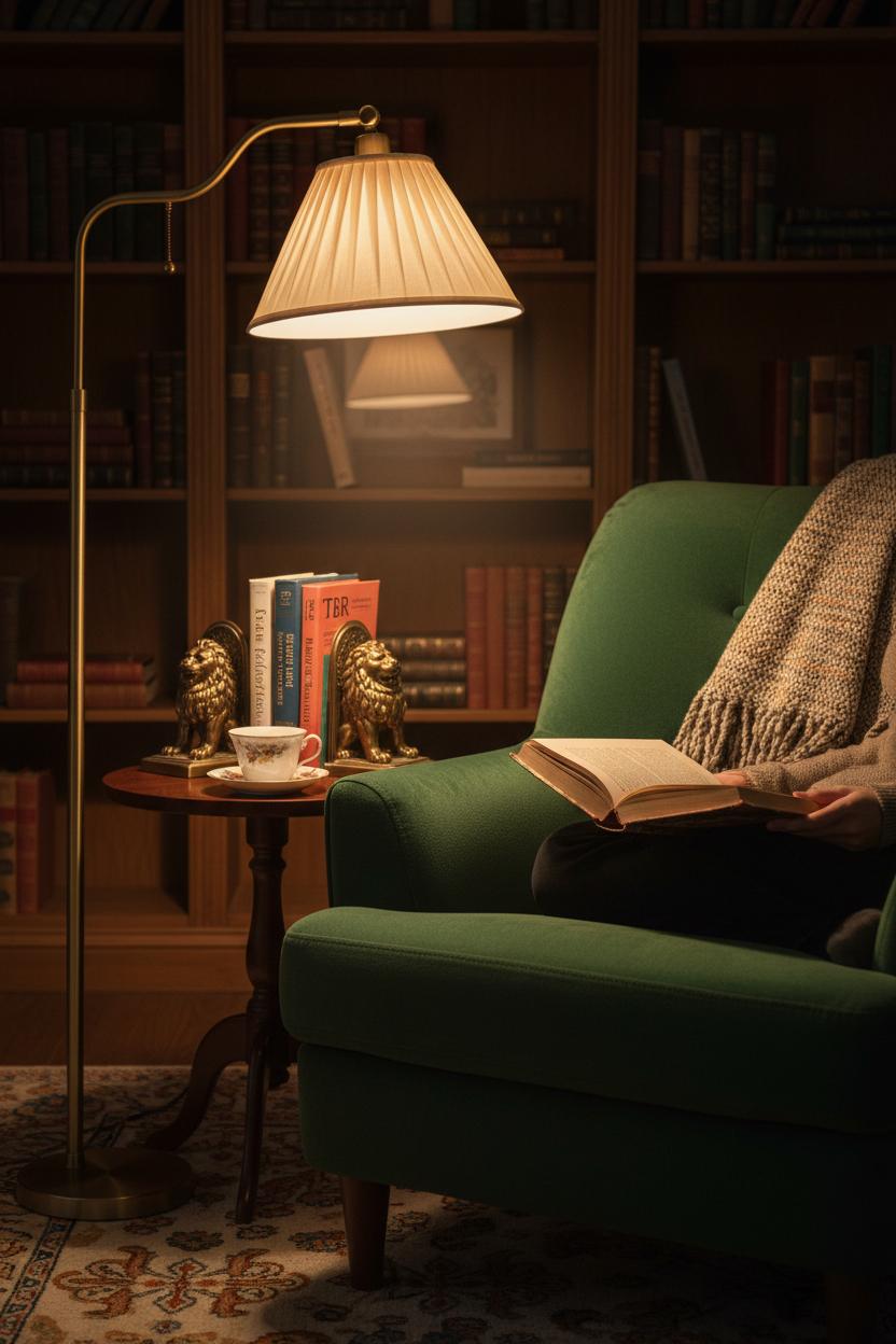 Style-wise, follow your heart. For vintage library style, choose aged brass, a pleated shade, maybe even a pull chain that clicks like a quiet secret; layer in a wool throw blanket, a teacup and saucer, and watch the room soften. If your bookish room ideas lean minimalist, try a slim black arm with a linen drum shade and a pale wood base—calm, modern, and clean. Whatever you choose, let the lamp be both muse and tool: a small sun for your corner that flatters your covers, frames your chair, and invites you back to the story, chapter after chapter.