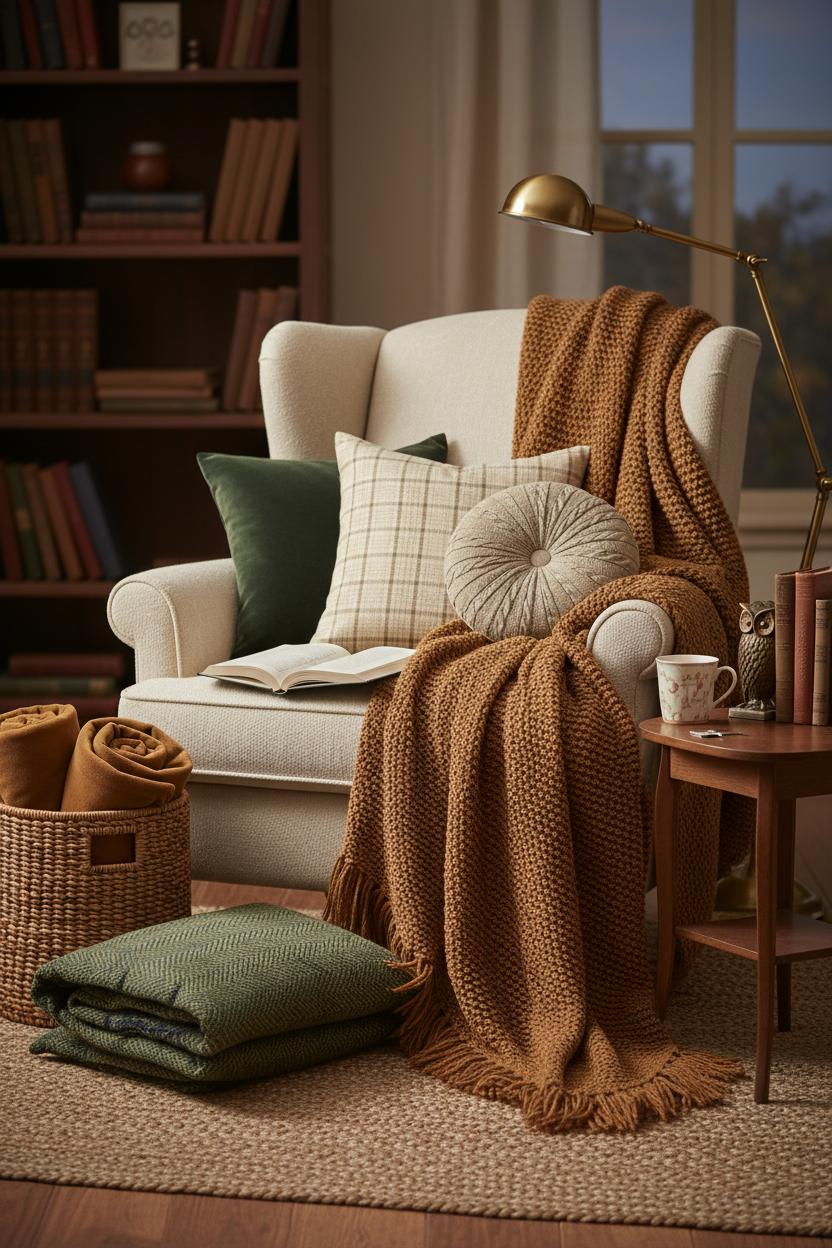 For bookish room ideas that feel timeless, layer textiles like stories: a tartan folded at the foot of the seat, a linen cushion to breathe in warmer months, a woolen one for depth in winter. Keep a basket beside the cozy bookshelf to rotate blankets by season, and don’t be afraid to double up—one throw blanket for draping, another rolled and ready for extra-cold nights. When the pages turn and the world outside quiets, these fabrics do more than decorate; they anchor the moment, creating a soft, lived-in cocoon that invites one more chapter, and then another.