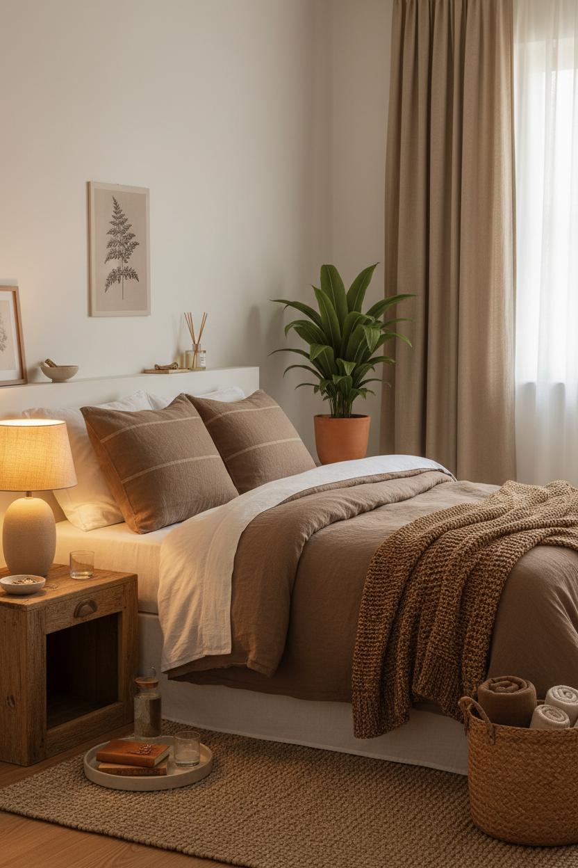 Wrapping up: a cozy brown aesthetic bedroom comes to life with layered textures, warm lighting, and intentional simplicity. Blend earthy tones like caramel, cocoa, and sand with natural woods, linen, and ceramics for neutral home decor that soothes. Keep surfaces light and airy, then add depth with plush throws, woven rugs, and greenery. Mix thrifted charm with clean lines for a minimalist boho mood, and let scent and soft music finish the vibe. Use these cozy bedroom ideas as a guide, but trust your senses—edit, soften, and style until your retreat feels like a hug.