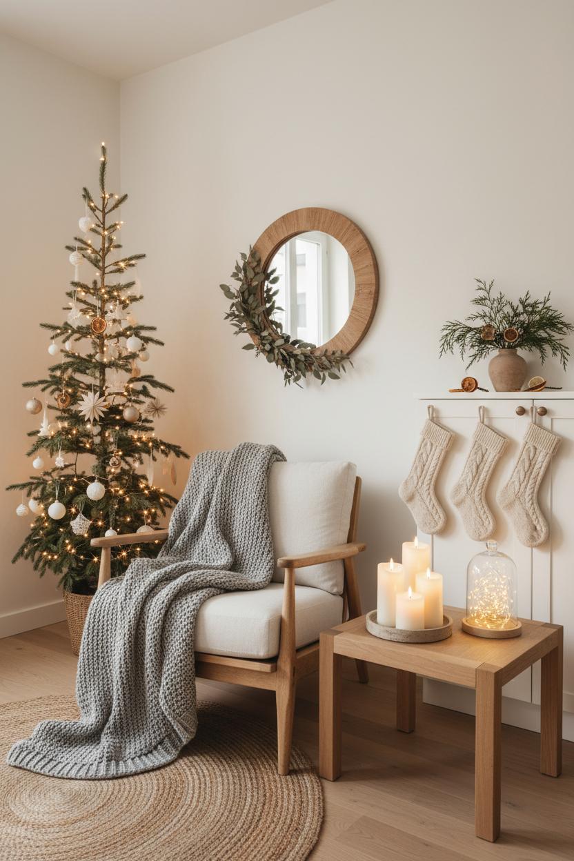 When square footage is precious, lean into a minimalist christmas approach that celebrates airiness, texture, and glow. A limited palette sets the tone: think creamy whites, warm oat, soft gray, and natural woods that instantly calm visual noise and establish that neutral christmas decor vibe. Keep furniture lines clean and surfaces edited, then add warmth through tactile layers—chunky knits, linen, and a hint of wool—to craft a cozy holiday home that still breathes. For a subtle scandi christmas nod, incorporate paper stars, ceramic houses, and matte finishes; they feel festive without shouting, and they pair beautifully with greenery and soft light to create a relaxed christmas aesthetic.