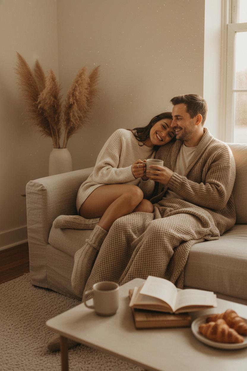 Lean into the cozy couple aesthetic with neutral tones, soft textures, and candid moments you’ll treasure. In this guide, we’ll style cozy couple photos at home using neutral home decor—think a beige sofa cover, pampas grass decor, and a neutral throw blanket—plus effortless matching outfits and a linen loungewear set. Sip from a ceramic coffee mugs set and let candid photography do the storytelling. From morning snuggles to golden-hour laughs, these simple tweaks create warmth, intimacy, and a timeless couple aesthetic you’ll want to pin.