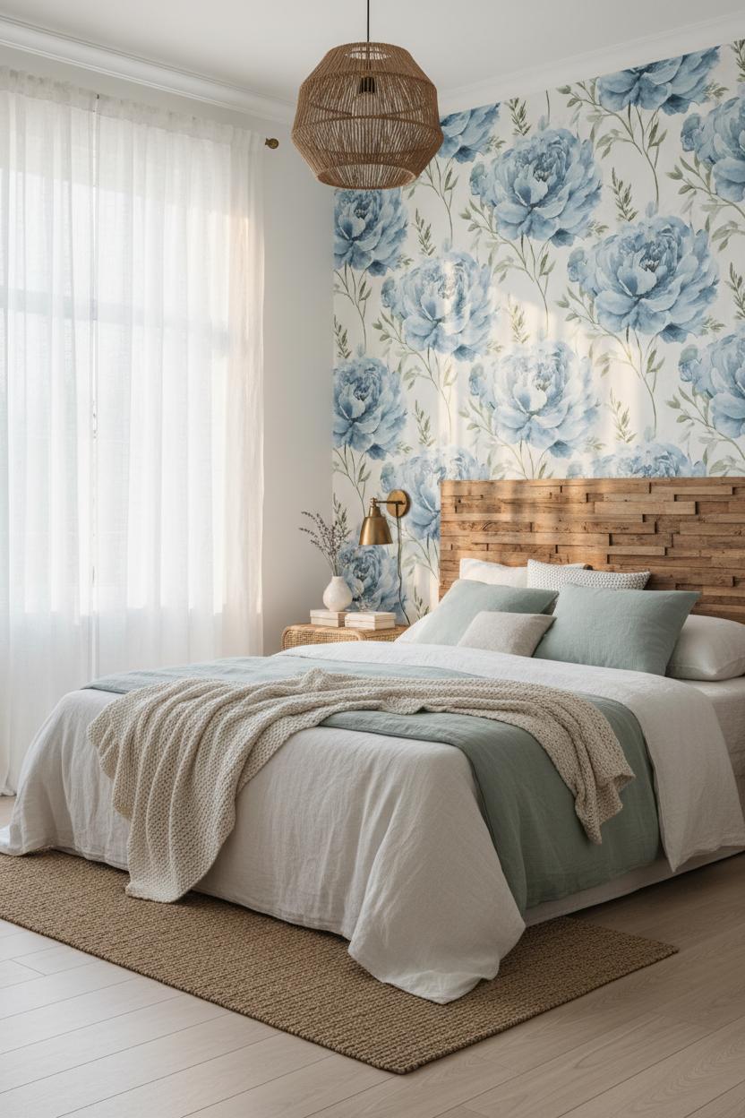 There’s something timeless and softly cinematic about unfurling blue floral wallpaper in a bedroom—think morning light brushing across petals, a whisper of vintage charm, and that serene hush that makes you want to linger a little longer. If you’re craving romance without fuss, try a single accent wall behind the headboard to frame your bed like a piece of art. Powdery blues and watercolor botanicals lean airy and elegant, while deeper indigo blooms feel cocooning and moody for evening wind-downs. To keep it fresh, look for modern wallpaper interpretations of florals—oversized petals, painterly stems, or delicate sketches on a pale ground—so the look nods to nostalgia without drifting into fussy. It pairs beautifully with breezy coastal decor: layered linens, rattan, driftwood accents, and a woven pendant that catches the light. And if you’re doing a weekend home makeover, peel and stick blue wallpaper is a renter-friendly dream; most removable wallpaper goes up easily and comes down clean. A wallpaper smoothing kit is your best friend for bubble-free seams and a polished finish.