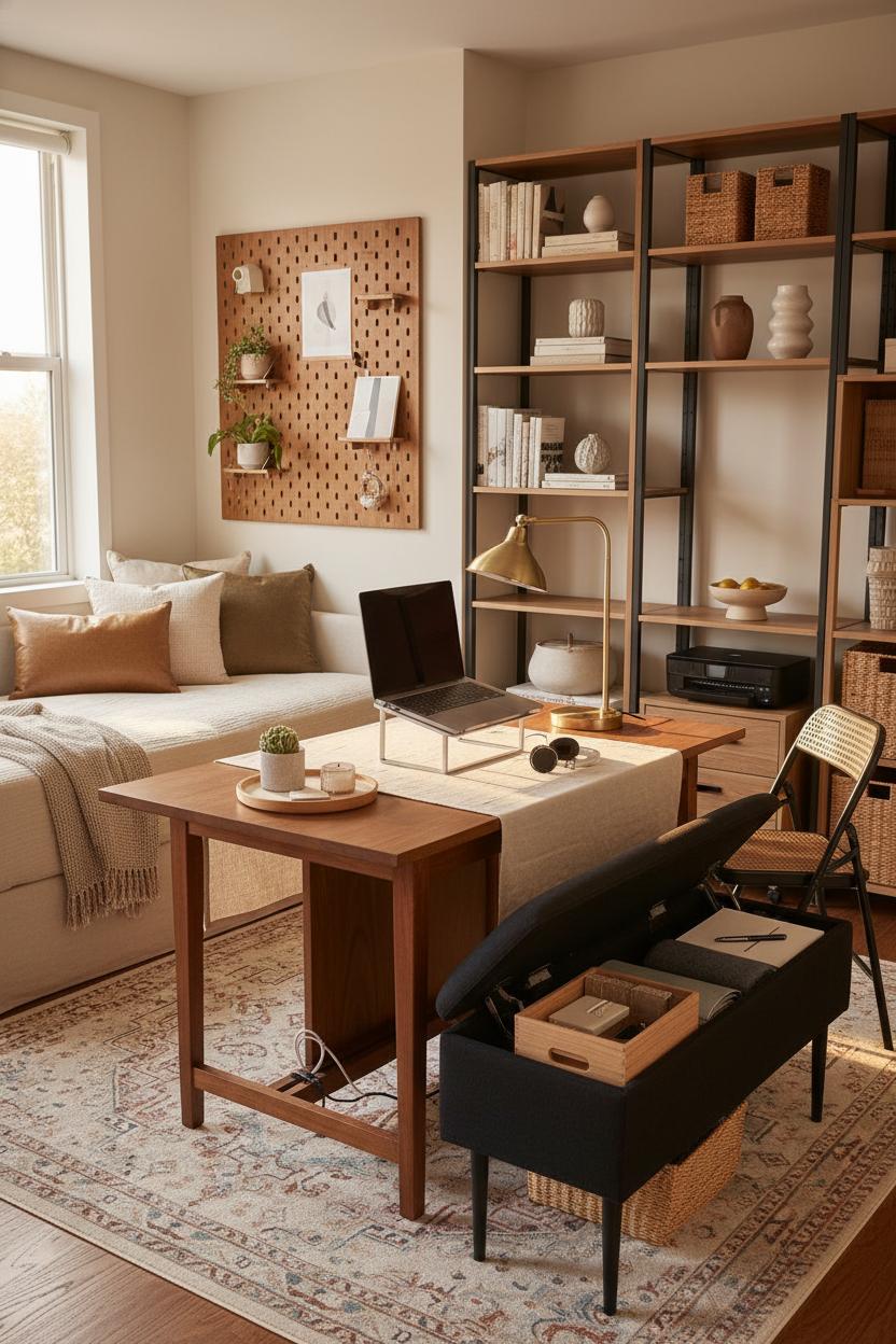 When one room moonlights as a guest retreat, dining nook, and workplace, the secret is furniture that shifts roles as gracefully as you do. Picture an extendable dining table that serves Thanksgiving dinner, then becomes your weekday space-saving desk with a laptop stand and a pretty task lamp. A slim bench with hidden storage corrals extra linens for overnight guests alongside your chargers and notebooks. If you’re working with an apartment office, a daybed with a tailored cover instantly reads like a sofa by day and flips to comfy guest mode at night—no clunky conversions required. Layer in a soft rug to define the “office zone,” keep a collapsible dining chair nearby, and lean into warm textures so the room feels styled, not crowded.