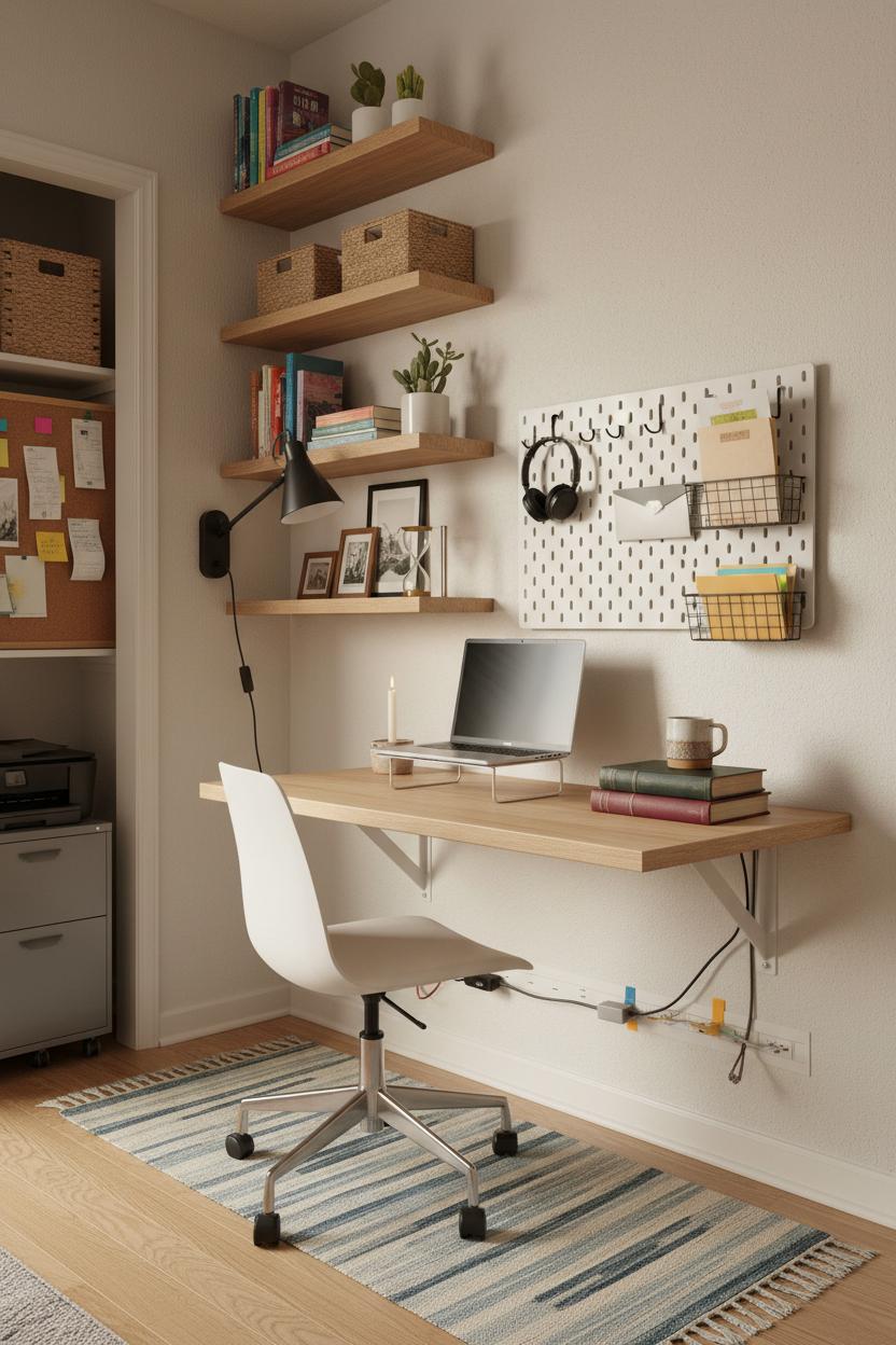 Short on square footage? These small home office ideas turn any apartment office or tiny office setup into a calm, clutter-free zone. We’ll pair a wall mounted desk or foldable desk with a space-saving desk layout, add vertical storage office tricks like a pegboard organizer and slim shelves, and finish with under desk cable management and a rolling file cabinet for hidden paperwork. Expect renter-friendly tips, multifunctional pieces, and layout swaps that squeeze more function from corners, closets, and hallways—so your workspace works as hard as you do.