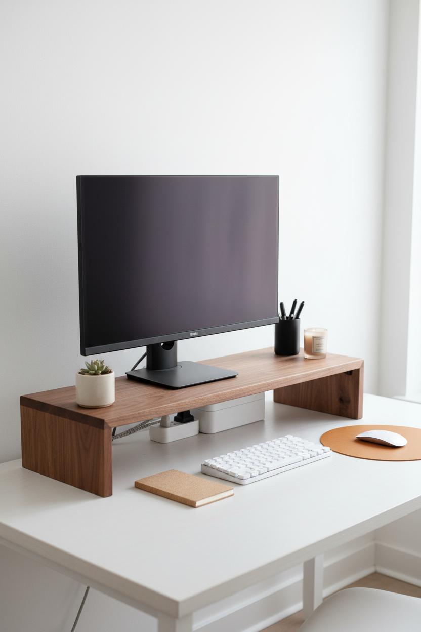 Beyond the pretty, the practical perks stack up fast. A stand with a built-in phone slot or a shallow drawer saves you from scatter, while a ventilated tray supports a laptop without overheating. Pair it with a cable management box to whisk away cords so your backdrop is blissfully uncluttered on camera. Keep your mouse pad glide-ready and your hands relaxed because everything has a place and your screen finally meets your gaze. If you share a space or rotate between tasks, look for adjustable legs or a riser that nests—easy to shift, easy to reset. Materials matter here: wood warms up white desks, metal leans modern, and acrylic keeps small spaces feeling open. Tie it into the rest of your desk accessories for a cohesive look that feels styled yet lived-in. Think of your monitor stand as the anchor of your setup—the quiet hero that lifts your workflow, polishes your home office decor, and turns everyday workspace organization into something you actually enjoy maintaining. When your screen is at the right height and your surface is clutter-free, you get a desk that looks magazine-worthy and works even harder for you.