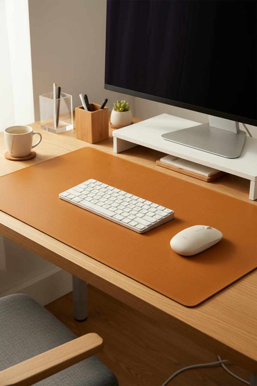 Luxury is a look, not a price tag, and the easiest way to fake it is with simple, streamlined desk accessories that feel intentional. Start with a slim monitor stand to raise your screen and sneak in storage for notebooks and sticky notes—suddenly your surface looks curated, not cluttered. Pair it with a matching desk organizer for mail, receipts, and those tiny bits that tend to drift. Acrylic is your best friend here: an acrylic pen holder catches the light like glass, shows off pretty pens, and instantly elevates the vibe of your home office decor without screaming for attention. Add a soft, oversized mouse pad in a neutral or muted earth tone to ground everything and give your setup that cozy-but-polished finish.
