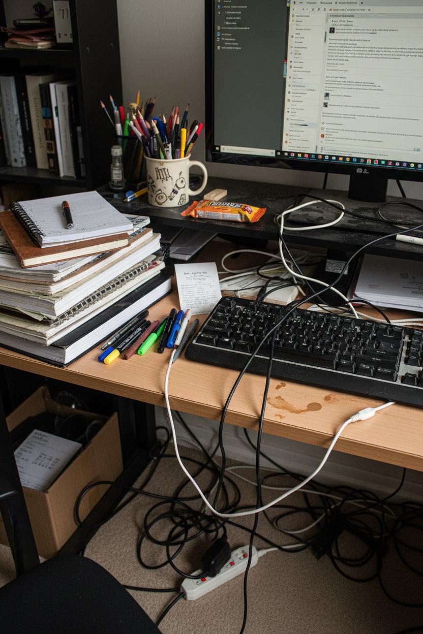 Next, tame the visual noise. A cable management box hides that unruly power strip and chargers in one sleek move; add a few cable clips behind your desk and label the ends so swapping devices is painless. For your desktop, a generously sized mouse pad anchors the layout and adds softness under hand, doubling as a subtle pop of color or texture. Stack incoming papers in one shallow tray and file weekly instead of daily—the reduced friction keeps workspace organization realistic. Keep only what you use every single day within reach; the “sometimes” office supplies can live in a nearby drawer with simple dividers so you’re not hunting mid-task.